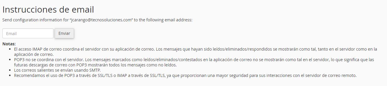 Esta interfaz tiene información y herramientas para ayudarlo a configurar su cliente de correo.