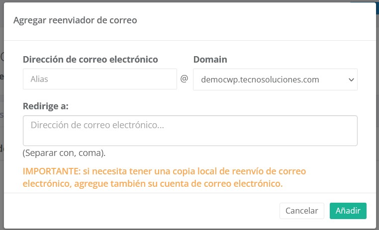Además de crear cuentas de correo electrónico, puede crear redireccionadores que son cuentas de correo electrónico que sirven como puente para enviar el mismo correo electrónico a diferentes cuentas.