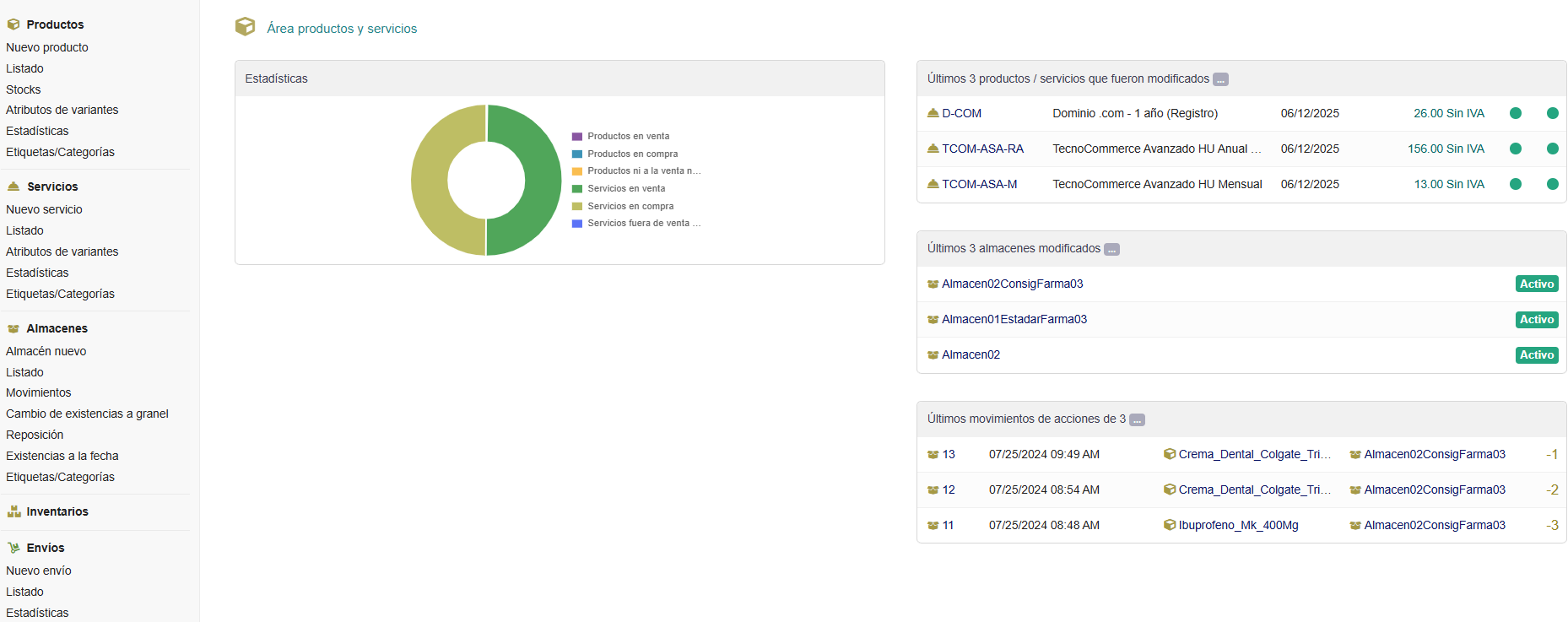 - Lista de los últimos productos/servicios/almacenes modificados: esto nos ayuda a saber qué es lo más recientemente actualizado o creado.