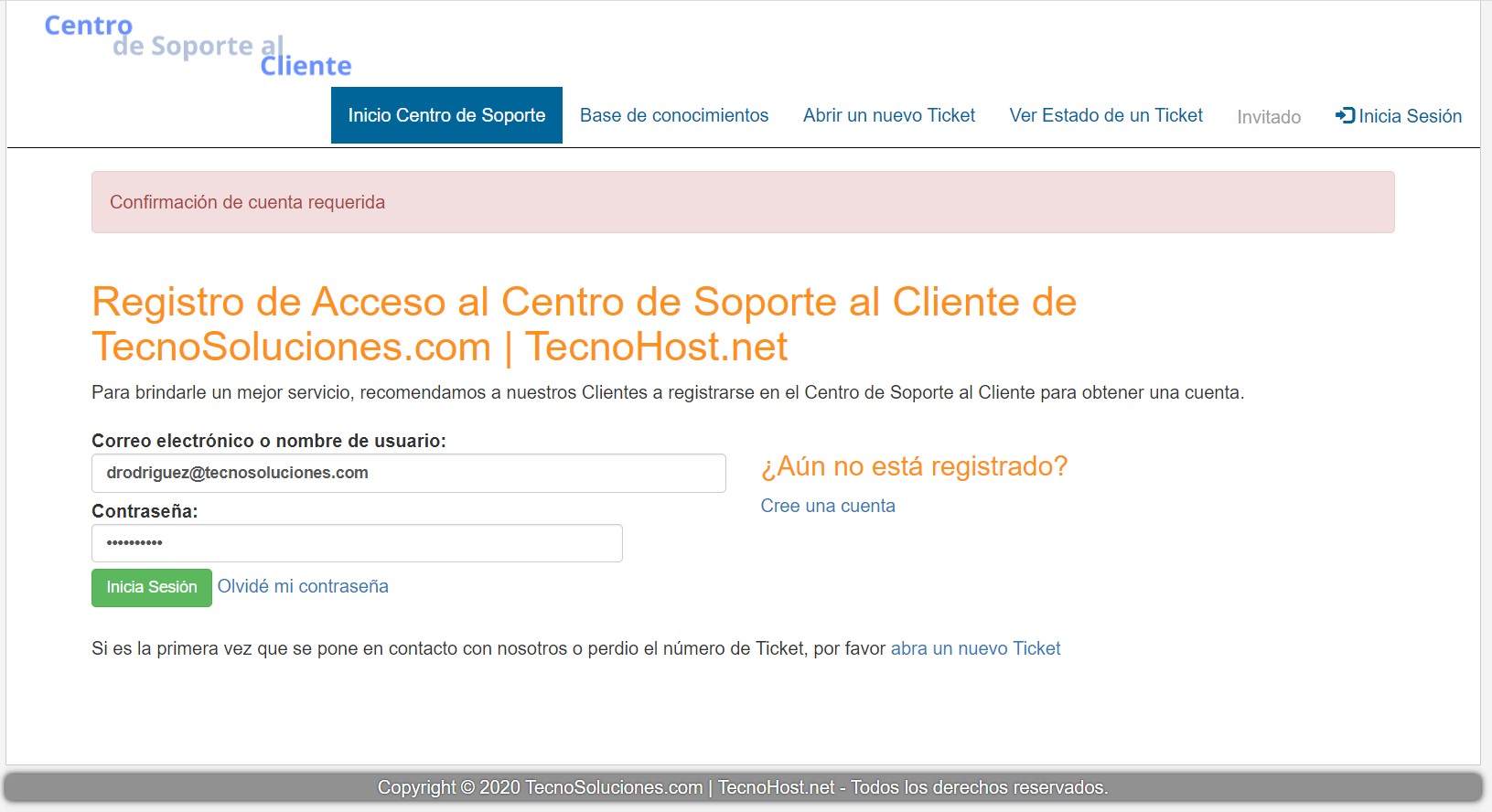 Si intenta entrar con sus datos sin haber activado la cuenta con el enlace que le llega por email, el sistema le advertirá que primero debe confirmarla.