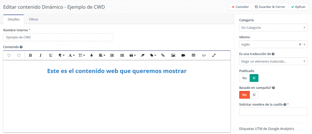 - Cree o edite un elemento de contenido web dinámico.