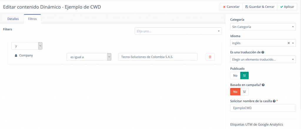 - Cuando alguien visita la página y se cumplen las condiciones de los filtros, se mostrará el CWD.