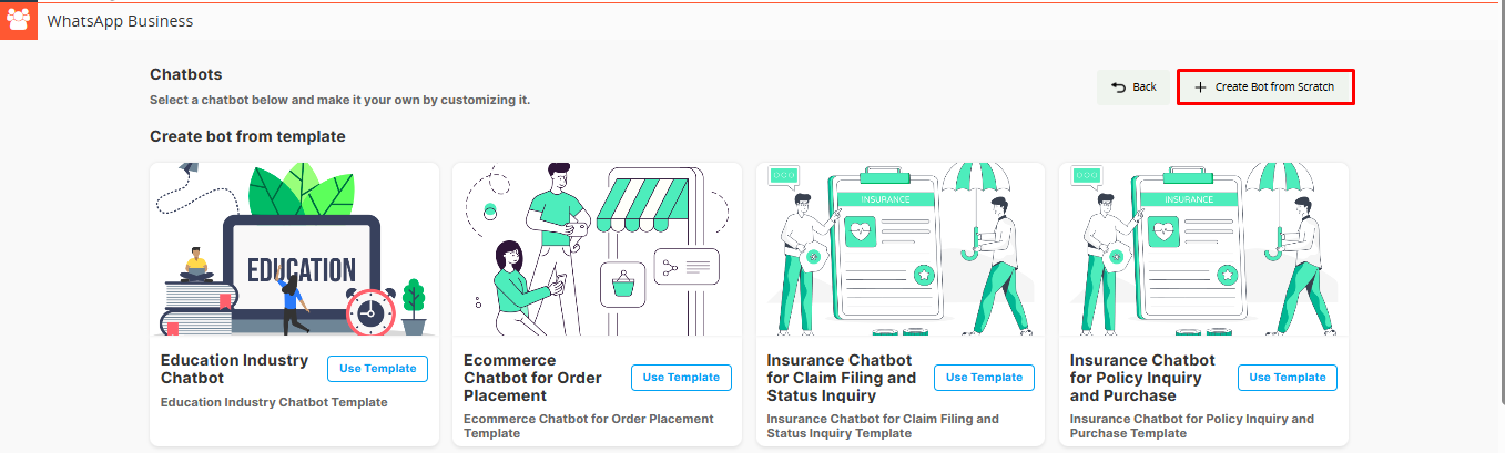 Los usuarios pueden usar la plantilla del bot creado haciendo clic en el botón “Agregar nuevo bot” y seleccionando la plantilla disponible.