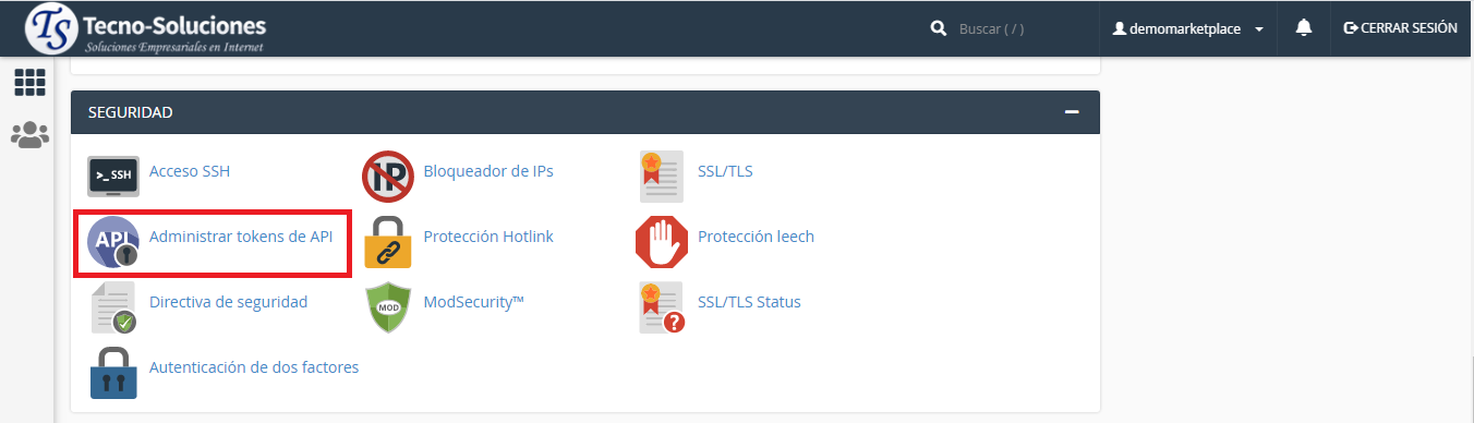 - Utilice tokens de API para ejecutar funciones de API desde la línea de comandos. Para obtener más información, lea nuestra documentación sobre cómo utilizar los tokens de la API de cPanel.