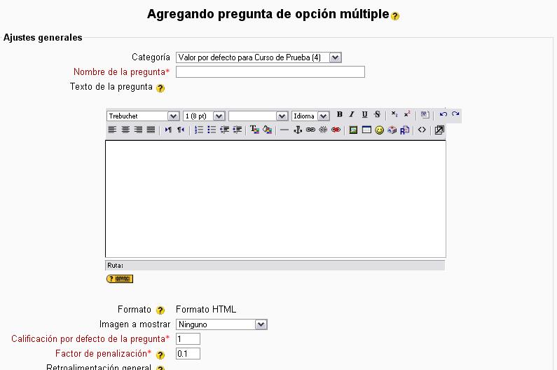 - Cree el texto de la pregunta. Si utiliza un editor HTML, puede dar formato a la pregunta como si estuviera en un procesador de texto.