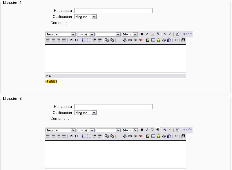 Estas preguntas permiten seleccionar una o más respuestas por medio de casillas de verificación. Cada contestación puede tener una puntuación positiva o negativa, lo que implica que seleccionar TODAS las opciones no necesariamente supone una buena puntuación. Si la puntuación total es negativa, entonces la puntuación resultante para esta pregunta será cero. ATENCION: Es posible crear preguntas que tengan una puntuación mayor que el 100%.