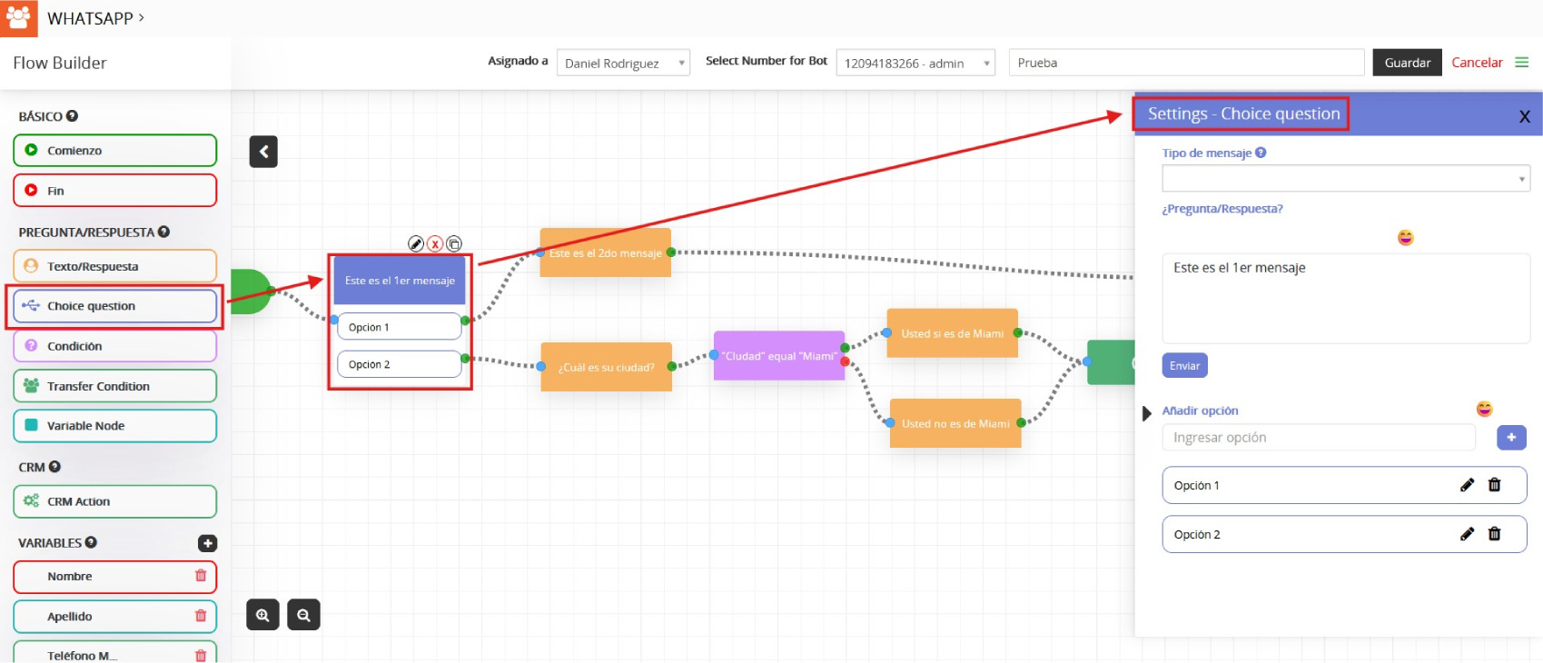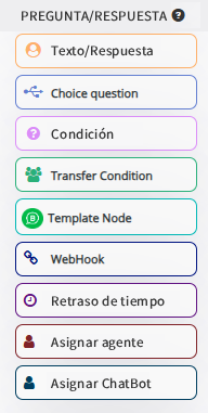 - Pregunta/Respuesta: Agregue una pregunta para el flujo según su elección.