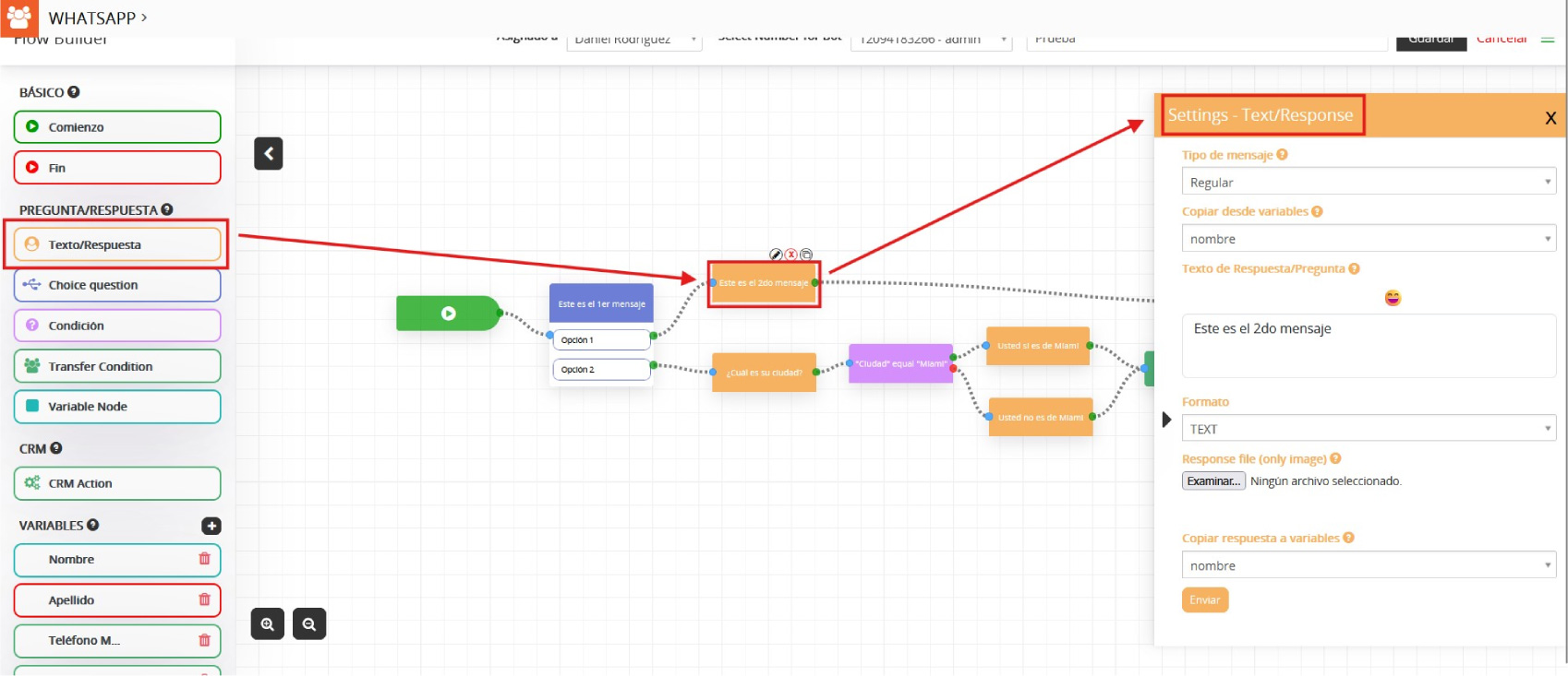 - Texto de respuesta/pregunta: Escriba un mensaje como respuesta o haga una pregunta al cliente.