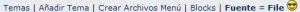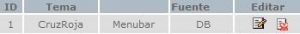 Inicialmente aparece un submenú con una serie de opciones, comenzando por la configuración general del menú (“Temas”), donde se establece la ID del mismo en el Portal, el nombre del Tema y las funciones estándar de Editar / Borrar. (Nota: Se recomienda consultar antes al Departamento Técnico de Tecno-Soluciones para hacer modificaciones en la secciones: Temas, Añadir Tema, Crear Archivos Menú, Blocks y/o Fuente, ya que requiere de ciertas especificaciones previas).