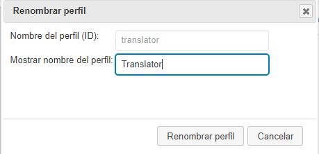 Al darle clic, nos aparece una cajita con una caja de texto para renombrar el rol, una vez que terminamos le damos clic al botón Renombrar perfil.