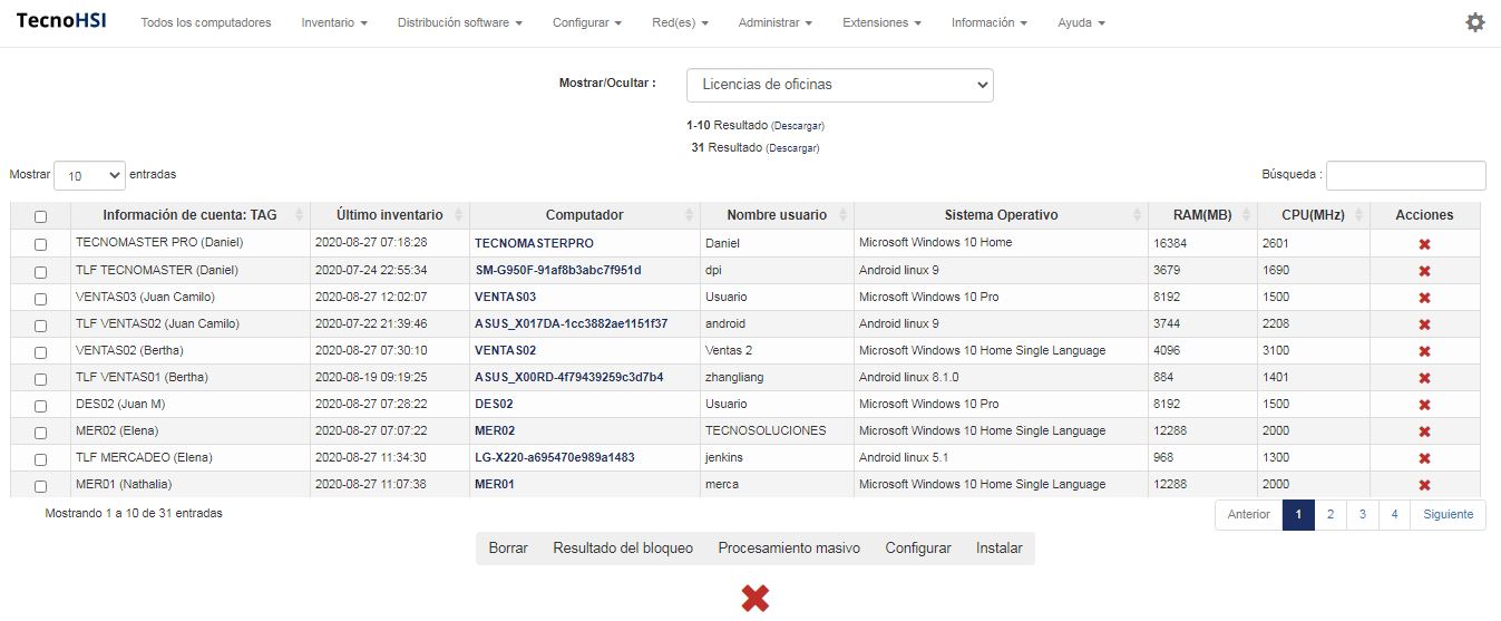 Esta consulta le permitirá mostrar todas las computadoras incluidas en el inventario. Las computadoras marcadas con una viñeta roja al principio de la línea son aquellas que tienen opciones personalizadas específicas.