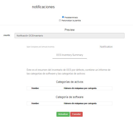 De forma predeterminada, se selecciona la plantilla del Inventario OCS.
