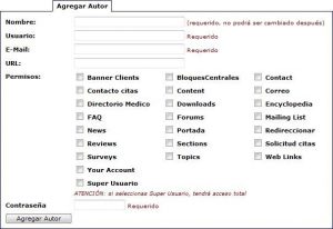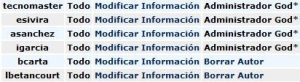 Este módulo permite agregar, editar y/o borrar Administradores con hasta tres niveles de control de acceso. El máximo nivel es el Super-Administrador, éste tendrá acceso a todas las áreas de administración de los módulos instalados y puede activar sólo funciones parciales para otros Administradores. Estos otros Administradores, aunque se le den el control de todo el Portal no podrán eliminar al Super-Administrador, pero si podrán editarlo, por lo que es recomendable no darles acceso al módulo “Editar Admins”. A su vez, para los administradores del Portal se dispone de una matriz de control de acceso por módulo para su respectiva administración.