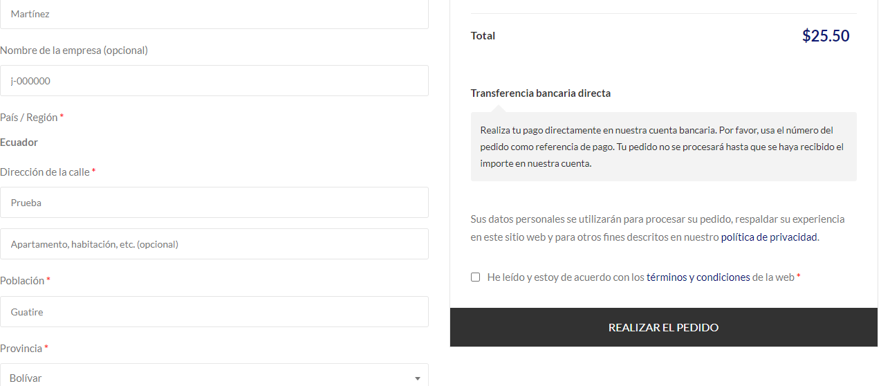 Llenamos todos los campos solicitados y damos clic en “Realizar pedido”:
