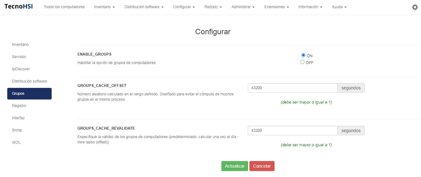 - GROUPS_CACHE_REVALIDATE: para evitar una carga excesiva en los servidores donde se utiliza una gran cantidad de grupos dinámicos, la membresía de los grupos se almacena en caché y se actualiza a intervalos regulares. Esta configuración especifica el intervalo, en segundos, en el que se actualizan los datos en caché de los grupos dinámicos. Este intervalo se incrementa actualmente en el tiempo de ejecución por un número aleatorio de segundos elegido entre O y “GROUPS_CACHE_OFFSET” para evitar que todos los grupos dinámicos se actualicen al mismo tiempo.