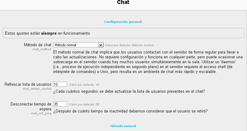 Ubicación: Administración> Módulos > Actividades> Chat