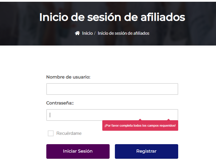 Para ingresar a su cuenta como afiliado y visualizar toda la información relacionada con las métricas y el rendimiento como afiliado, debe ir al menú: AFILIADOS > Panel del Afiliado. Esta página le mostrará un formulario de inicio de sesión para que ingrese sus datos (usuario o correo y clave de acceso).