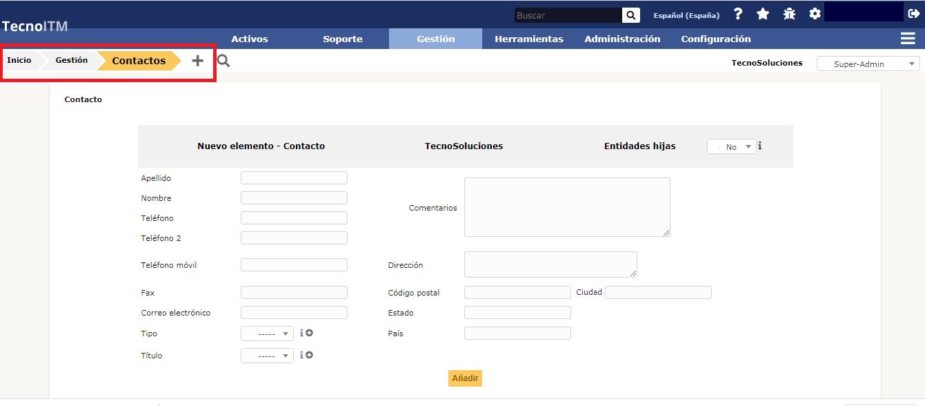 Los contactos se administran desde el menú Gestión > Contactos