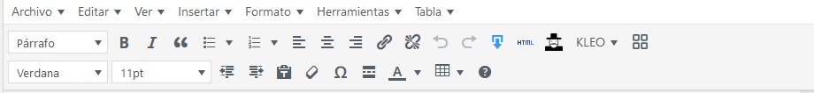 Dentro del campo de edición, contamos con la botonera que usamos para crear un artículo del blog o una página. Esta botonera es similar a la de Word y nos permite insertar imágenes y tablas.
