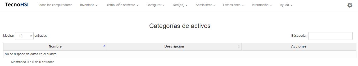 Para enumerar todas sus categorías, haga clic en el Administrar> Categorías de activos