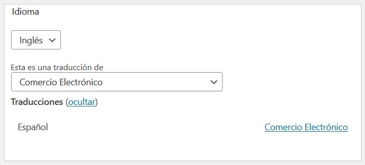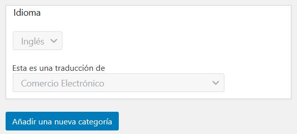 Mientras que si edita una de las categorías traducidas, el casillero de la parte inferior se muestra de la siguiente manera: