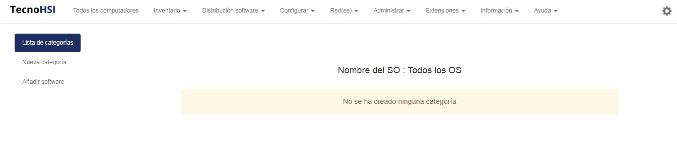 Para enumerar las categorías de software, debe ir al menú Administrar> Categoría de software. Por defecto, no hay ninguna categoría.