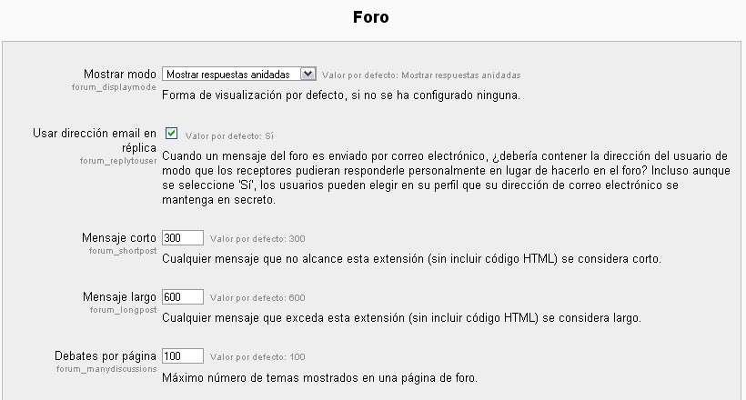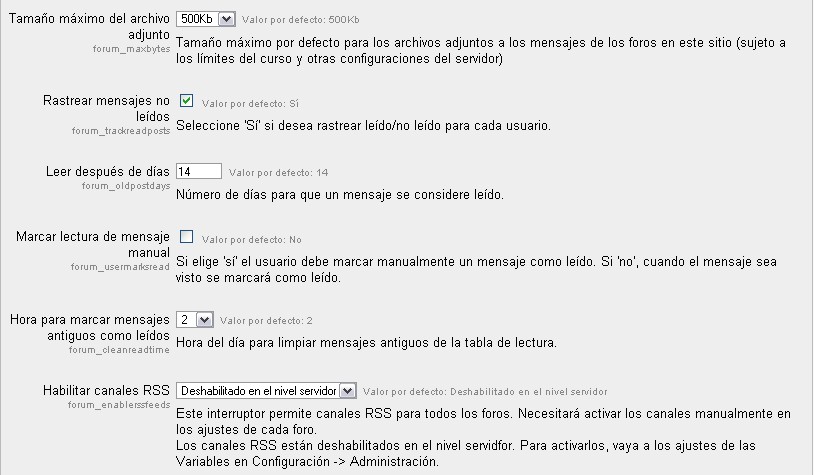 Ubicación: Administración> Módulos > Actividades> Foro