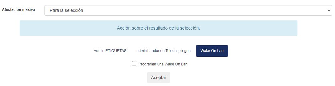 Para activar Wake On Lan en varias máquinas, navegue hasta la página Todas las computadoras. Compruebe la máquina que necesita para despertar y haga clic en el botón Procesamiento masivo. Navegue a la pestaña Wake On Lan y haga clic en Enviar.