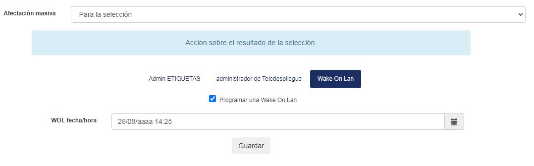 Para programar un WOL, navegue hasta la página Todas las computadoras. Compruebe la máquina que necesita para despertar y haga clic en el botón Procesamiento masivo. Navegue a la pestaña Wake On Lan y verifique Programe un Wake On Lan.