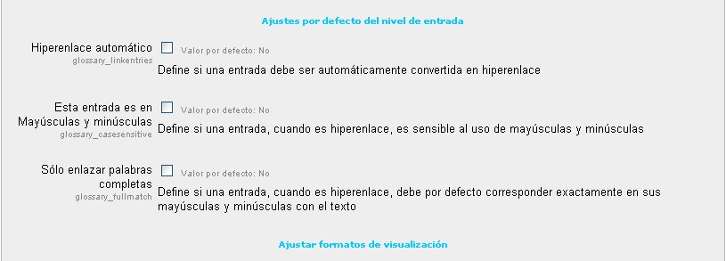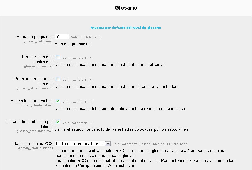 Ubicación: Administración> Módulos > Actividades> Glosario