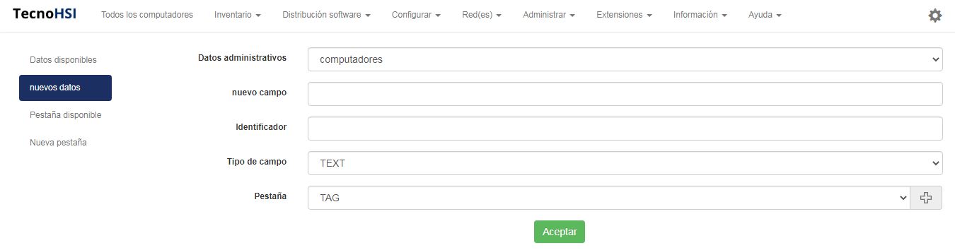 Los datos administrativos de computadores o SNMP se gestionan de la misma forma. Primero estará disponible en los detalles de la máquina, y el segundo estará visible en los detalles de un dispositivo SNMP.