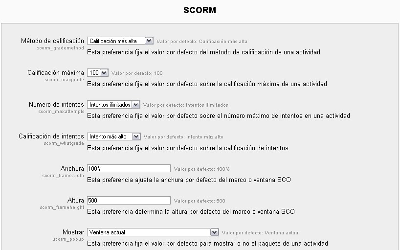 Ubicación: Administración> Módulos > Actividades> Scorm