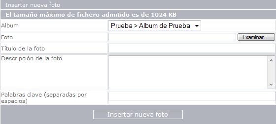 Álbum: Seleccionar el álbum al que estará asociado la fotografía a incluir.