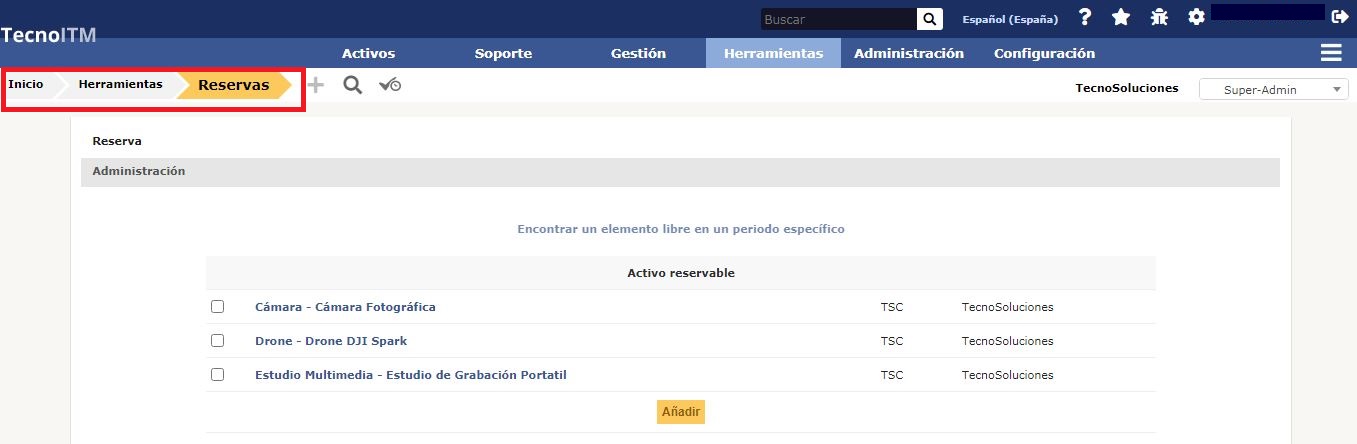 Las reservas se gestionan en el menú Herramientas > Reservas