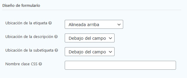 la clase CSS Ingrese el nombre de la clase CSS que le gustaría usar para anular los estilos predeterminados para este formulario.