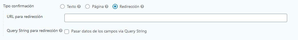 Si desea que el usuario sea redirigido a otra ubicación, como un sitio externo, al enviar el formulario, puede configurar la opción Redirigir. Para hacerlo, seleccione Redirigir como Tipo de confirmación e ingrese la URL completa a la que desea que se redirija al usuario en el campo URL de redireccionamiento.