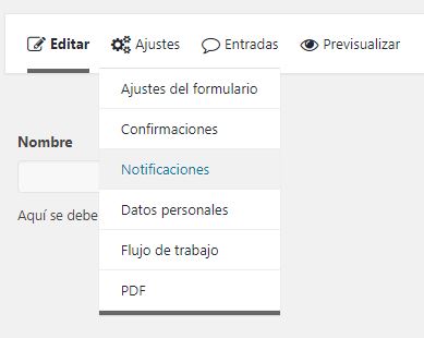 2. En el menú superior, coloque el cursor sobre Configuración de formularioy haga clic en Notificaciones.