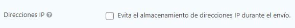 Marque esta casilla si no desea que las direcciones IP se almacenen al enviar el formulario.