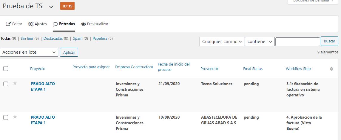 En la pestaña de Entradas, podemos observar todos los registros que se han generado dentro del formulario.