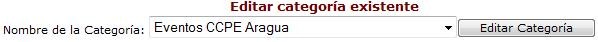Añadir / Editar Categoría: Consiste en llenar un sencillo formulario donde se debe colocar el nombre de la categoría, breve descripción y si va a ser activada al calendario. También es posible editar y/o eliminar una categoría existente.