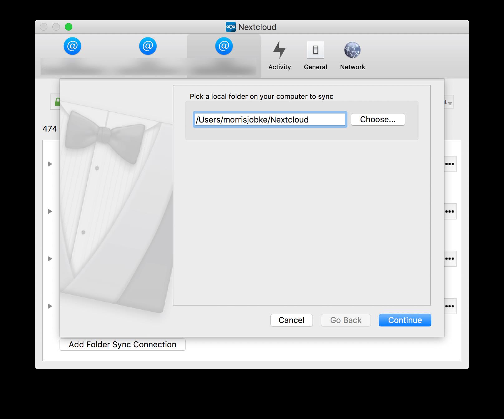 La adición de una nueva sincronización se inicia haciendo clic en la configuración (Add Folder Sync ConnectionAccount)