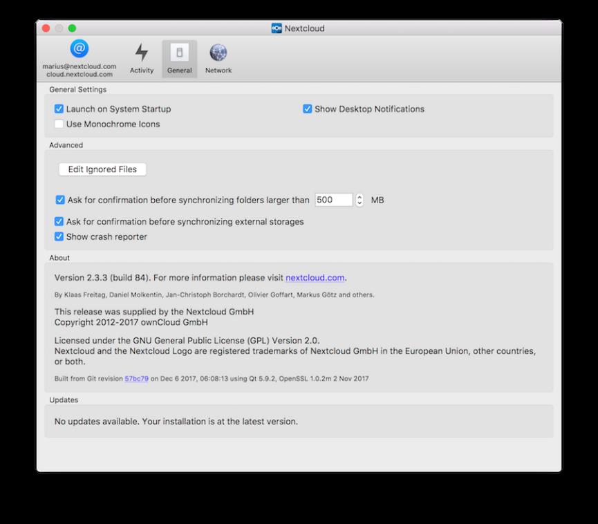 - Show Desktop Nofications: Cuando está seleccionada, se proporcionan notificaciones de burbujas cuando se ha realizado un conjunto de operaciones de sincronización.