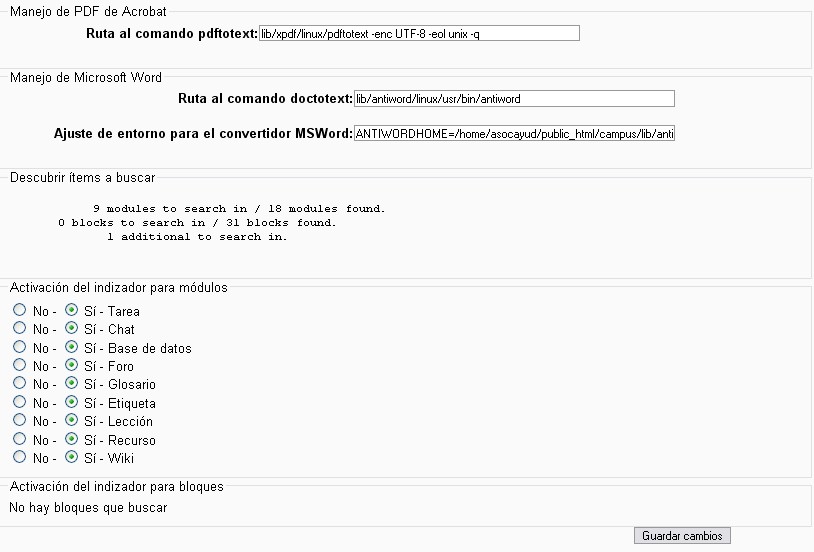 Ubicación: Administración> Módulos > Bloques> Búsqueda global