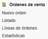 Este submenú permite la gestión de los pedidos de clientes (órdenes de ventas).