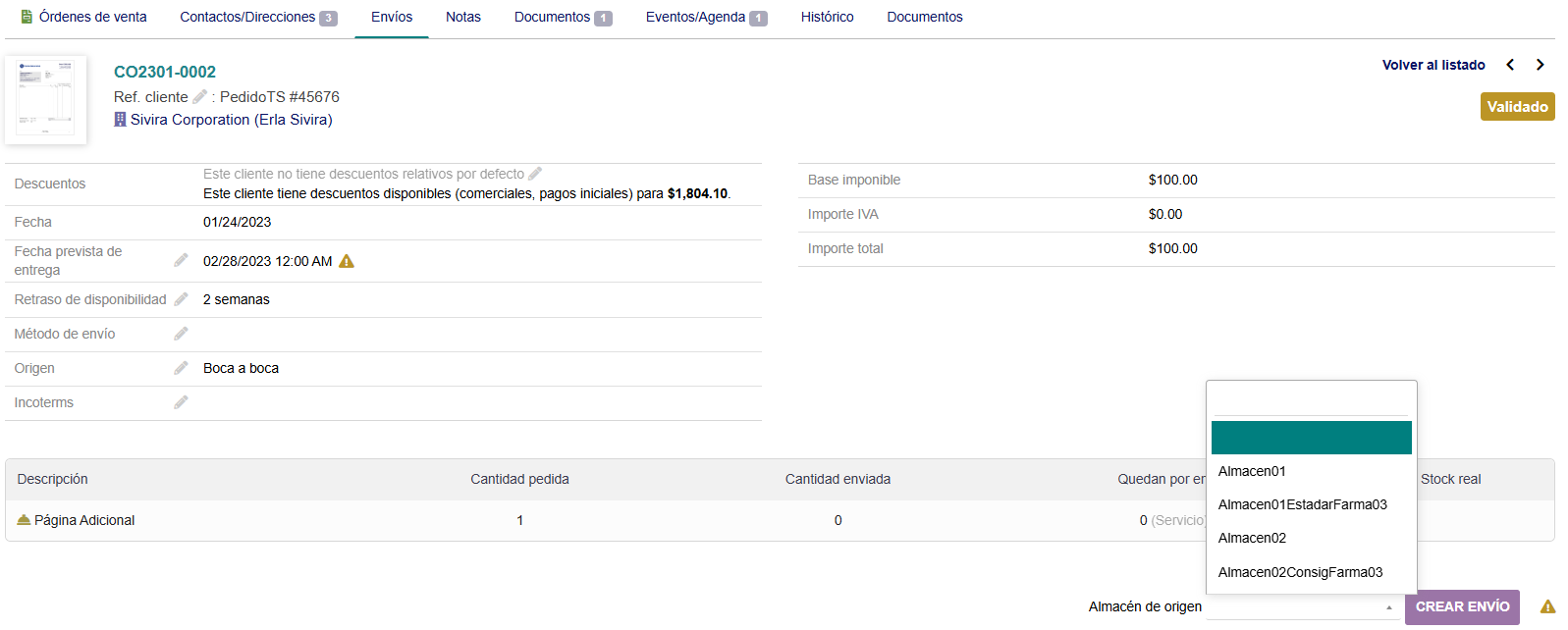 En el caso de que los productos del Pedido procedieran de diferentes almacenes, habría que hacer un envío por cada almacén.