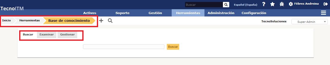 Se puede acceder a la base de conocimiento desde el menú Herramientas > Base de conocimiento
