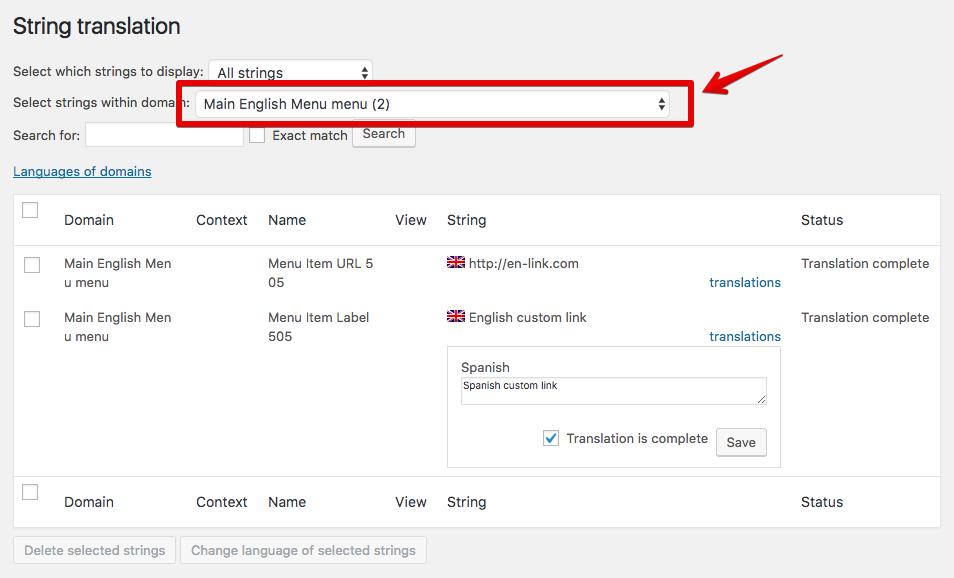 Si el complemento de Traducción de cadenas de WPML está activado, podrá utilizarlo siguiendo estos pasos:
