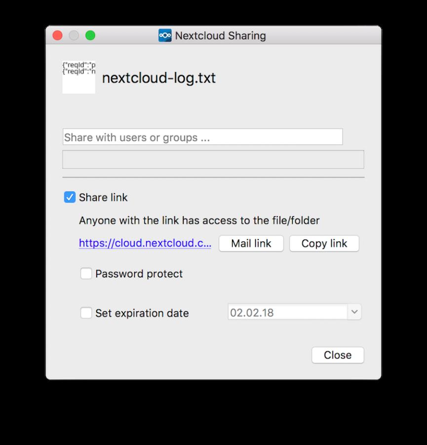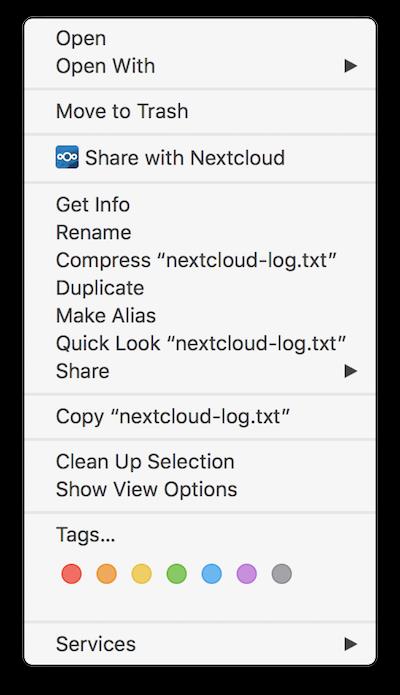 El cliente de sincronización de escritorio de TecnoCloud se integra con su administrador de archivos: Finder en macOS, Explorer en Windows y Nautilus en Linux. (Los usuarios de Linux deben instalar el complemento TecnoCloud-client-nautilus). Puede crear enlaces para compartir y compartir con usuarios internos de TecnoCloud de la misma manera que en su interfaz web de TecnoCloud.