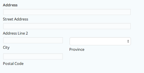 El tipo de dirección canadiense está formateado específicamente para direcciones dentro de Canadá.