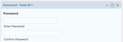 El campo Contraseña proporciona dos entradas de una sola línea (una para ingresar la contraseña y la segunda para confirmarla) que enmascararán el contenido ingresado con blobs o asteriscos. Está disponible en la sección Campos avanzados dentro del editor de formularios. El campo Contraseña solo está disponible cuando el complemento Registro de usuario está activo.